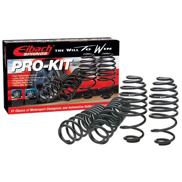 El kit Eibach Pro-Kit es un conjunto de 4 muelles o resortes helicoidales que sirven para disminuir la altura del vehículo con respecto a la altura original.